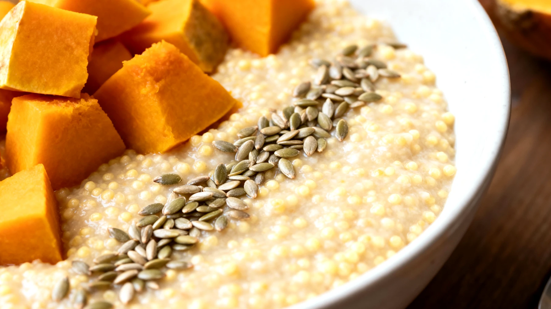 Die Zubereitung lässt sich gut in den Abendablauf integrieren: Während der Kürbis in Würfeln gedünstet wird – etwa 10 bis 15 Minuten bei mittlerer Hitze – kann die eingeweichte Hirse in der doppelten Menge Wasser zum Kochen gebracht werden. Nach etwa 15 Minuten bei niedriger Temperatur entsteht eine cremige Konsistenz. Der gedünstete Kürbis wird untergehoben, und erst auf dem Teller werden die Hanfsamen darüber gestreut.